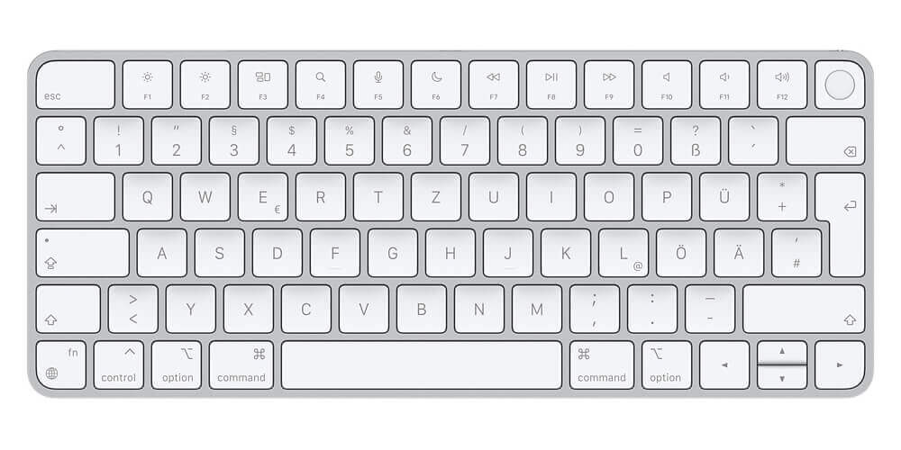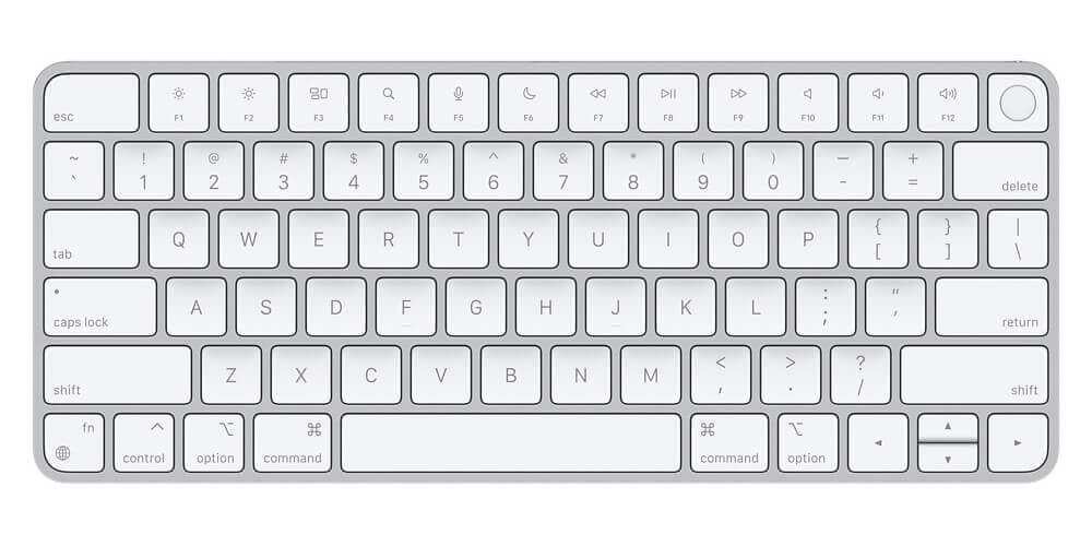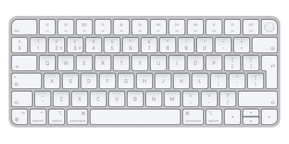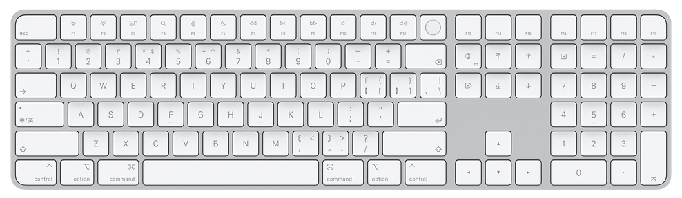 妙控键盘还分为短款和长款,如果桌面空间足够,使用长款会输入会更加便捷,长款比短款多了很多功能键以及小键盘。