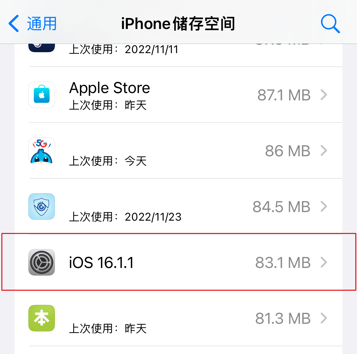 然后马上进入存储空间管理,找到新版IOS系统文件,