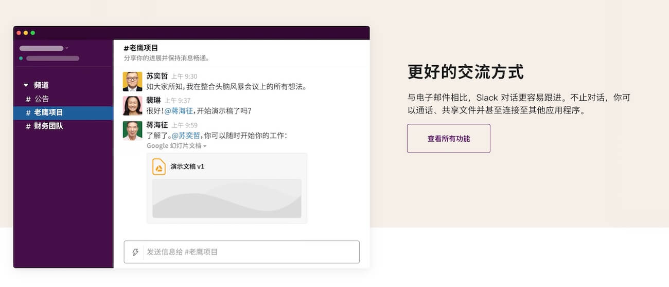 一般情况下你可以将产品的功用放到主标题,价值主张放到副标题;也可以将价值主张放到主标题,产品功用放到副标题(如上图中的万维广告和 Slack 的 Hero 标题);对于有些产品,功用及价值主张也可以用同一句话表达,副标题可以用来解释如何运作,例如: