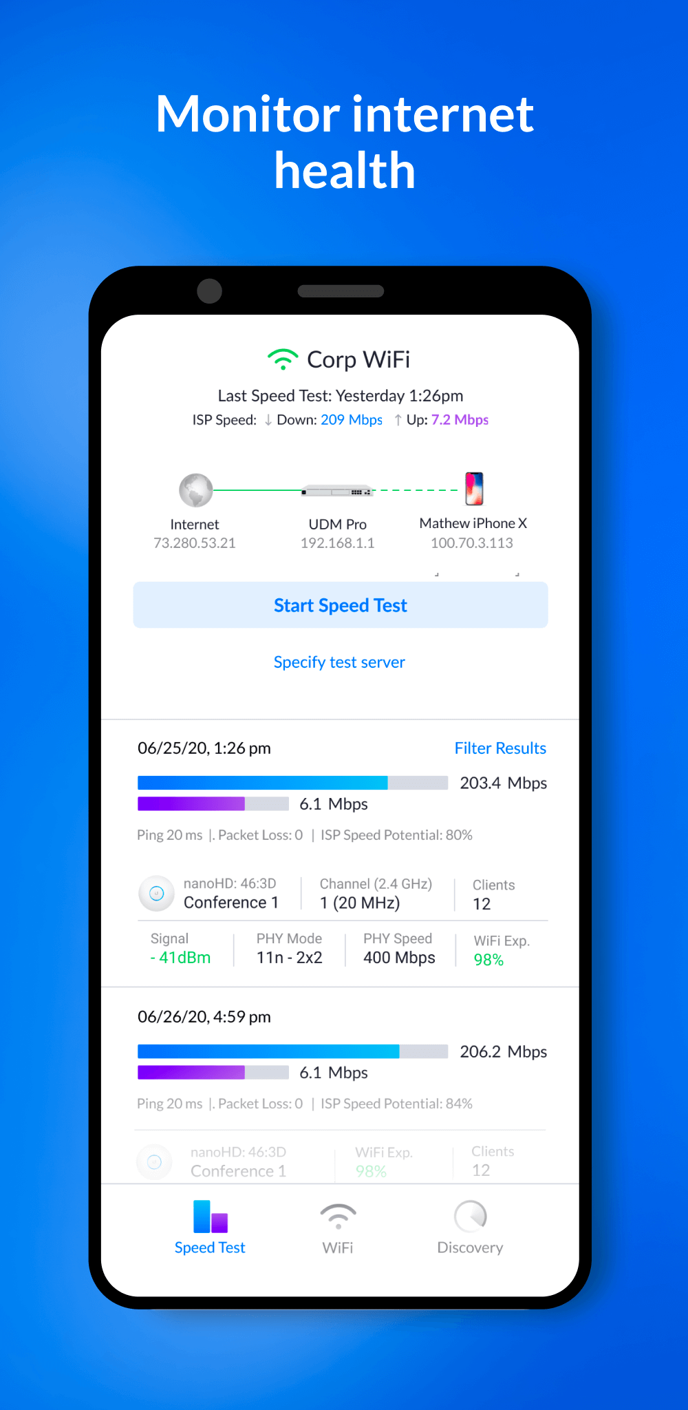 如果是安卓手机,出了speedtest还有更好的选择,Ubiquiti公司的wifiman测试项目更多,而且完全没有广告,可惜IOS由于权限不开放,只有最基本的测速功能